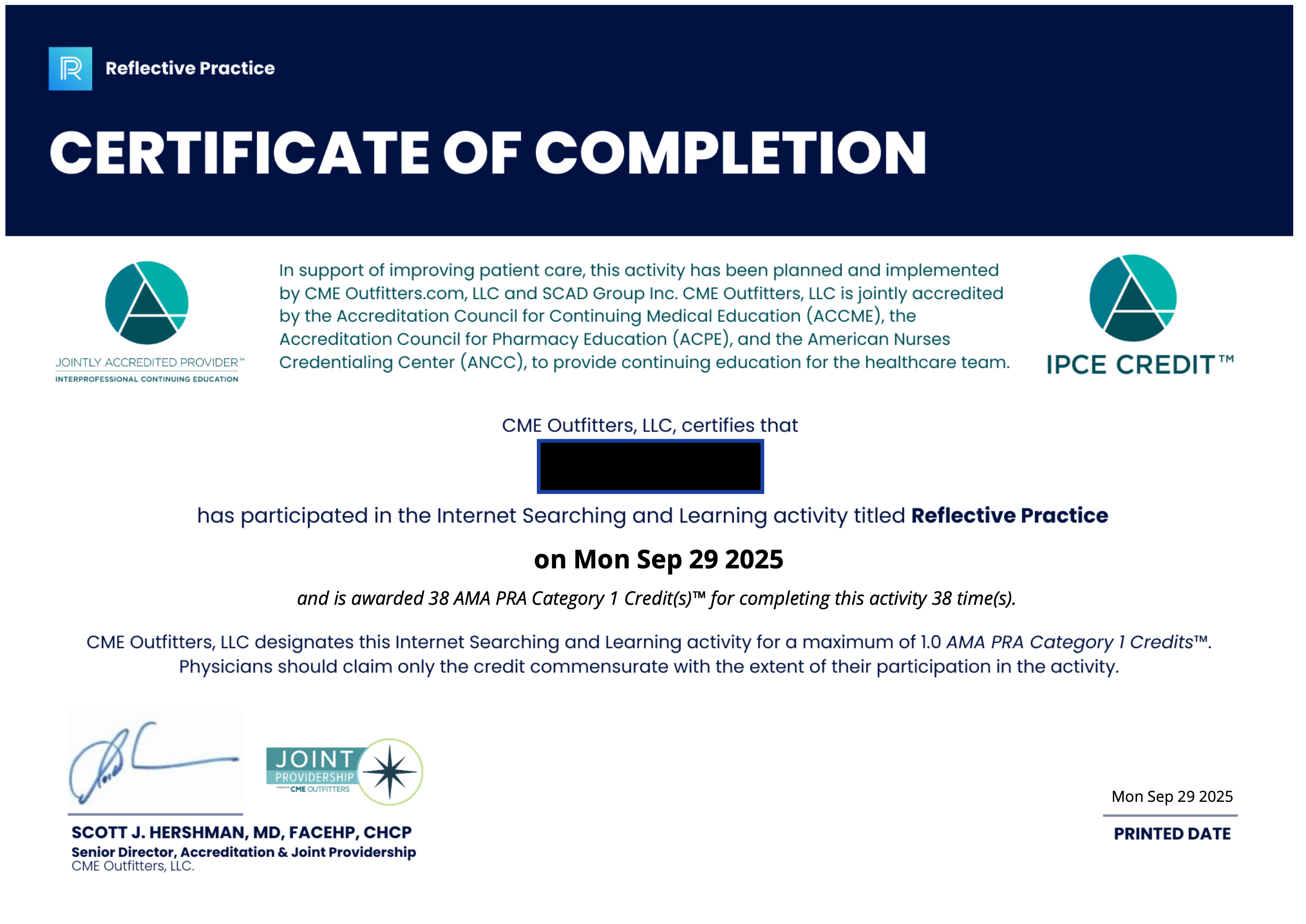 Remember, the credit is awarded for your reflections - not for the content, platform, person, brand, event, experience or conference that inspired you. That's why their names or titles won’t appear on the certificate.